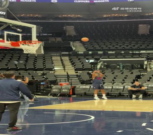 快船季前赛主场战掘金保罗赛前热身飚中负角度三分